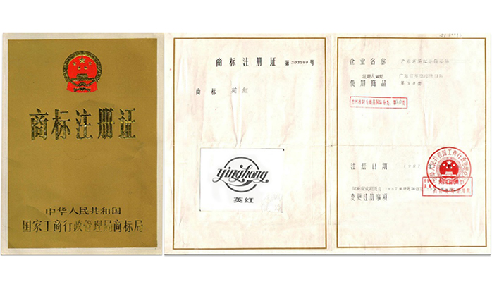 1987-英紅商標(biāo)在國家商標(biāo)局獲得注冊