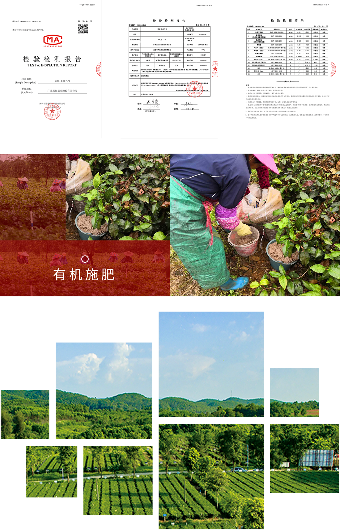英紅茶的茶基地,位于英德紅茶核心產(chǎn)區(qū)——廣東省英德市英紅鎮(zhèn),原生態(tài)茶園。英紅鎮(zhèn)位于北回歸線的花香地帶,是典型的喀斯特地貌,與印度斯里蘭卡處于同一緯度。這里雨量豐富,氣候溫潤(rùn),日照時(shí)間適宜,土壤呈弱酸性(PH值4-5.5),粘性沙質(zhì)土壤,質(zhì)地疏松肥沃,極其適宜茶樹(shù)生長(zhǎng)。茶園引用石門(mén)臺(tái)自然保護(hù)區(qū)的泉水澆灌茶樹(shù),施用農(nóng)家肥,是真正的原生態(tài)有機(jī)種植茶園。